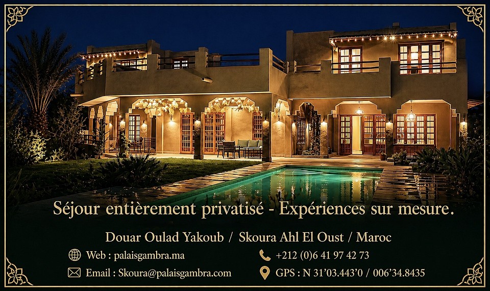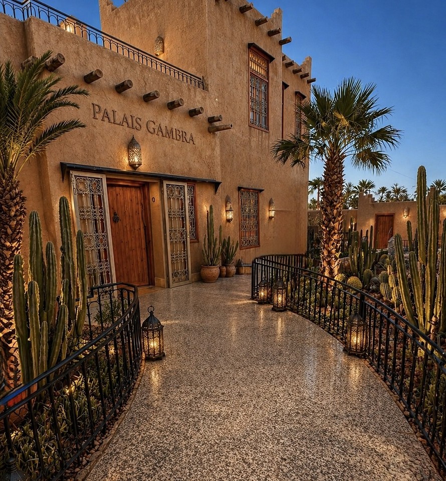 Le Palais Gambra incarne l'alliance d'un art de vivre marocain authentique et d'un niveau d'exigence suisse discrète et raffinée.