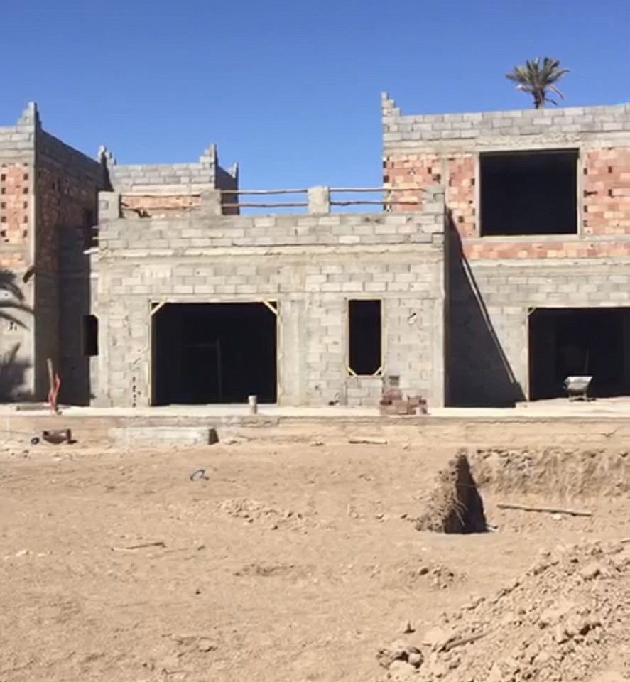 En octobre 2023, nous décidons de l'acheter et de lui donner une nouvelle vie à notre image. Nous nous lançons aussitôt dans des travaux conséquents, agrandissement, création des terrasses et des dépendances, creusage du puits, rehaussement et revêtement des murs en pisé, application du tadelakt et pose de zellige...